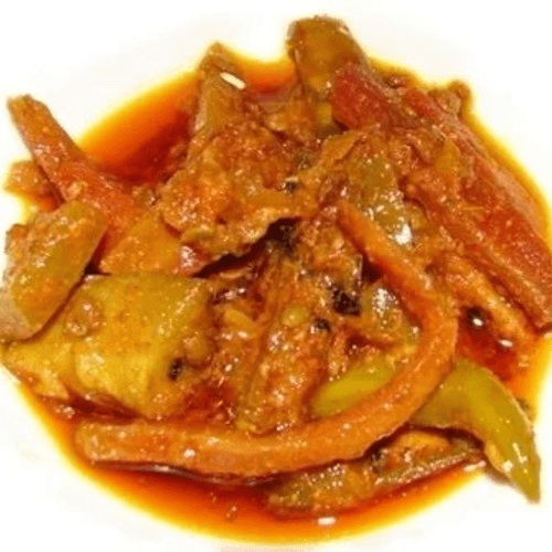 Large shrimps cooked with cut okra, diced onions, tomatoes in a light spices Served with rice