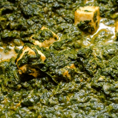 Fresh homemade cheese cooked in a creamy spinach sauce Served with rice